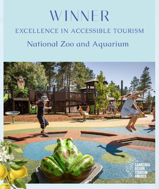 The National Zoo and Aquarium is proudly accredited by the Australian Tourism Industry Council for both Limited Mobility and Wheelchair & Scooter Access. These accreditations confirm that key areas of the zoo have been independently assessed to support visitors using wheelchairs, mobility scooters, or with reduced mobility, including accessible paths, facilities, seating and amenities. The zoo provides a range of services and facilities for those with mobility and accessibility requirements. We provide detailed accessibility information so guests can make informed decisions about their visit, with a full public guide available to view before arrival. Click on the icons below to review the Public Accessibility Guide.